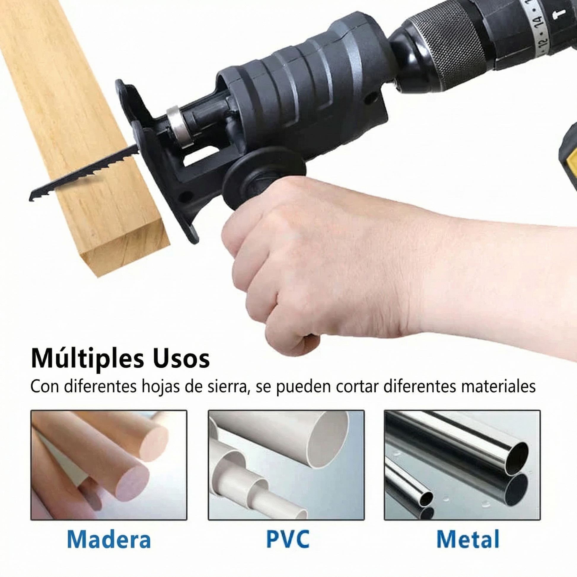 El adaptador principal para transformar tu taladro en una sierra práctica.